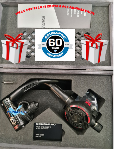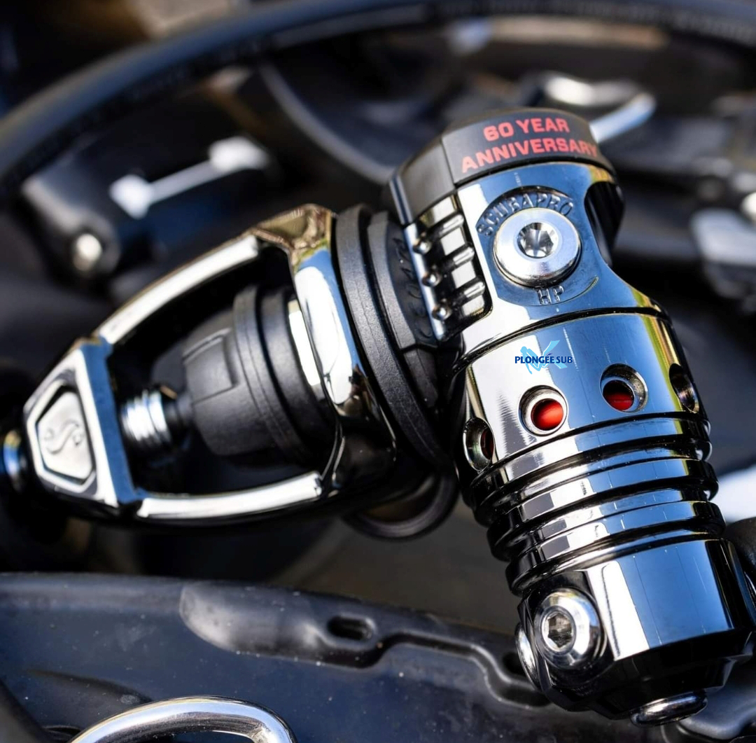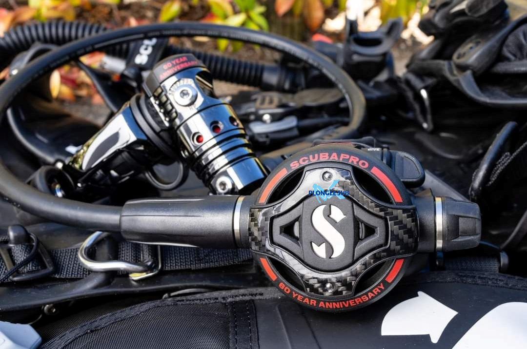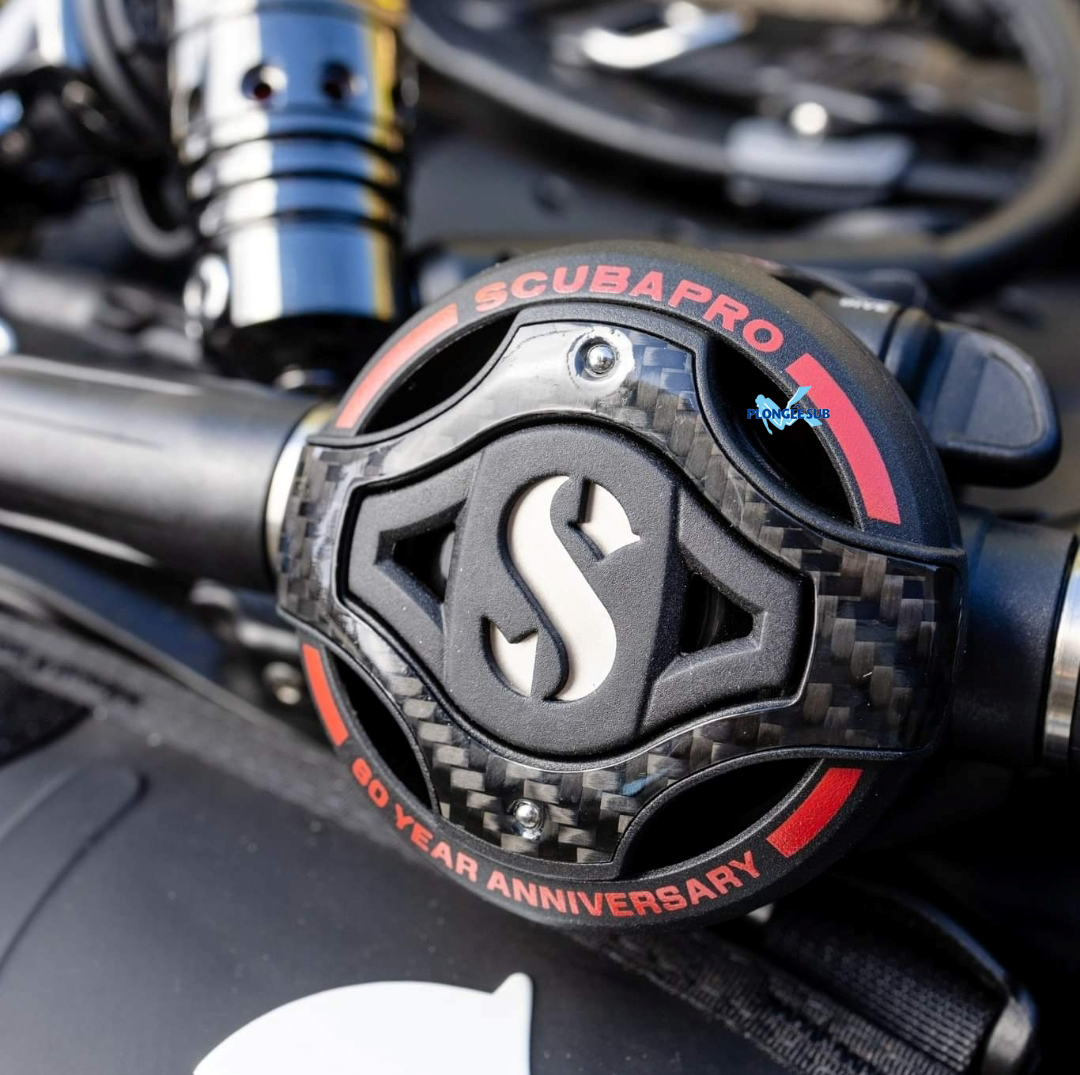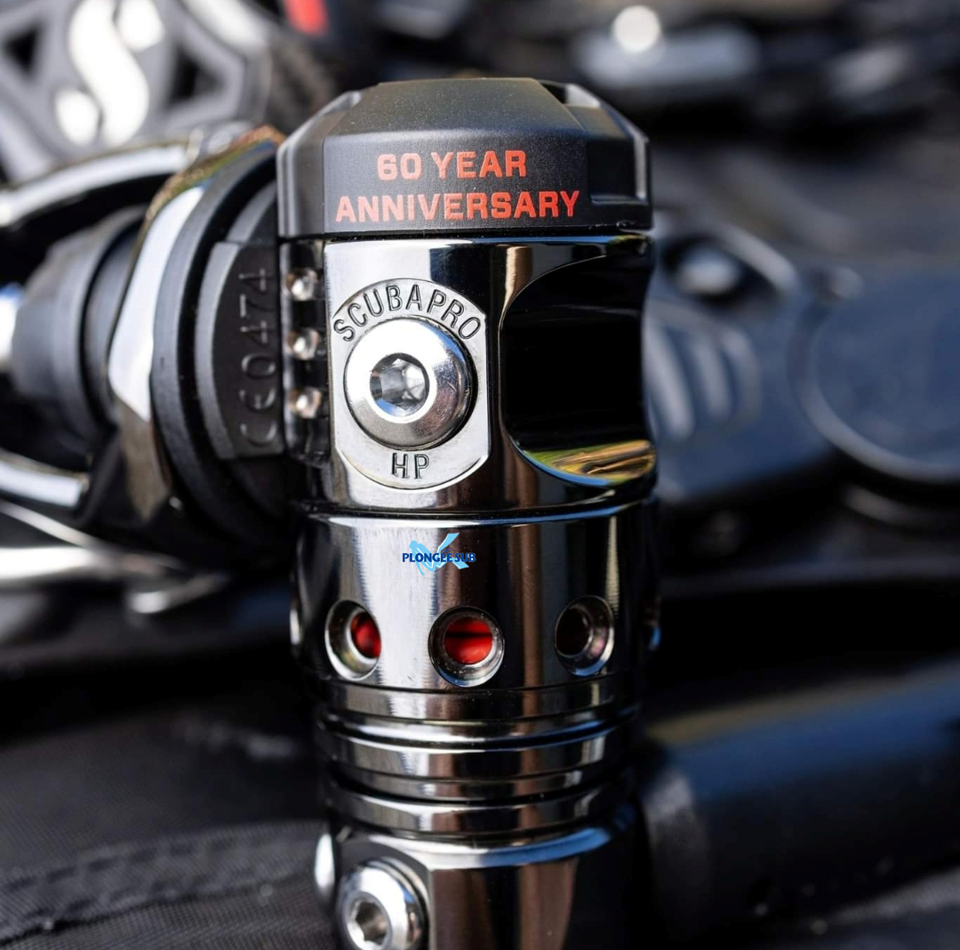 gravés les logos de SCUBAPRO et du 60e anniversaire. La couleur gris foncé de la